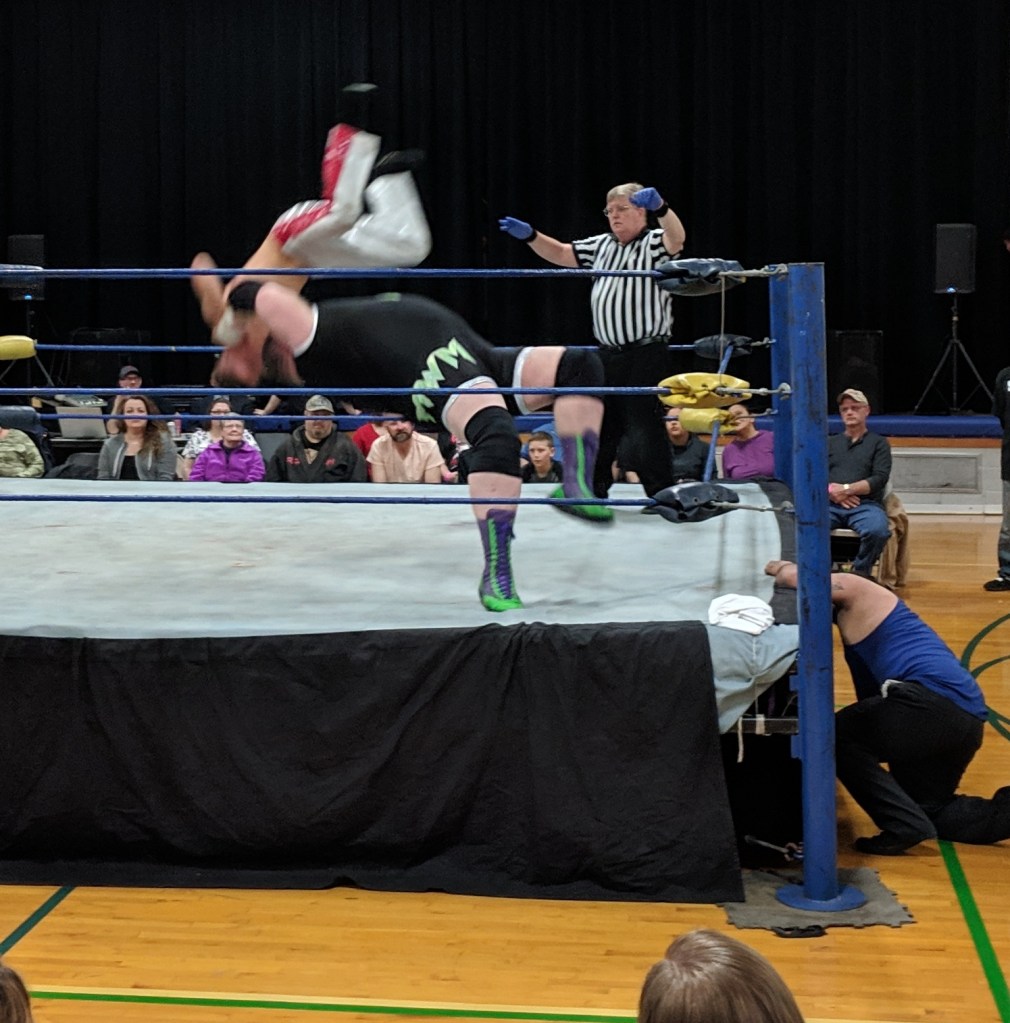 On Sunday April 28, 2019 at 2pm, wrestling fans from the region packed the DeMotte Boxing Club to standing room only as a show of support for the fundraiser put on for the family of Austin Wright (Fury). This was a short five-match card put on in cooperation between ACW and Backbreaker Wrestling. This was not a normal show, wins and losses didn’t matter, and all I’m going to do here is list the matches with a few pics from each; if you were not able to make the show but are interested in the cause and lending some support, there’s a link at the bottom.